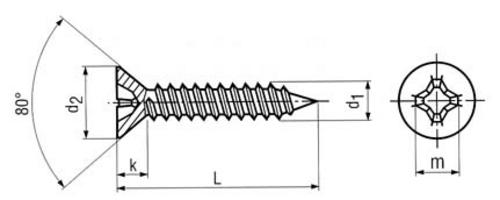 Countersunk head tapping screw with cross recess H D7982 zinc plated